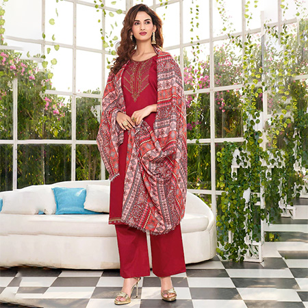 Maroon & Pink Embroidered Pure Cotton Unstitched Dress Material