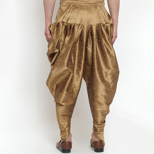 Gold-toned solid regular-fit dhoti with cowl pattern, has an elasticated waistband and slip-on closure