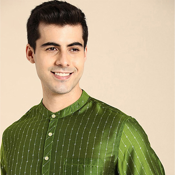 Men Olive Green & Gold-Toned Ethnic Motifs Woven Design Kurta