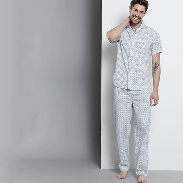 This classic night suit will help you set the right tone for any season. Club it up with those fluffy room slippers for a win-win look for leisure hours.