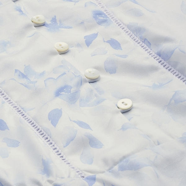 White & Blue Tropical Print Mandarin Collar Peplum Top
