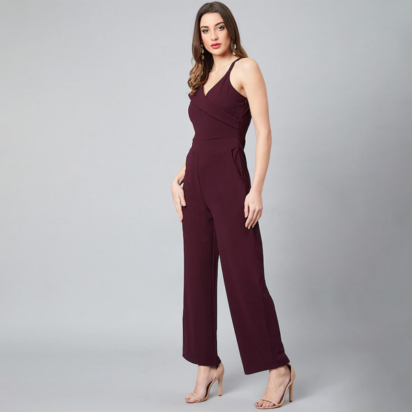 Women Burgundy Solid Basic Jumpsuit