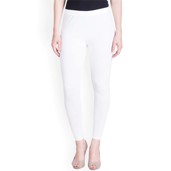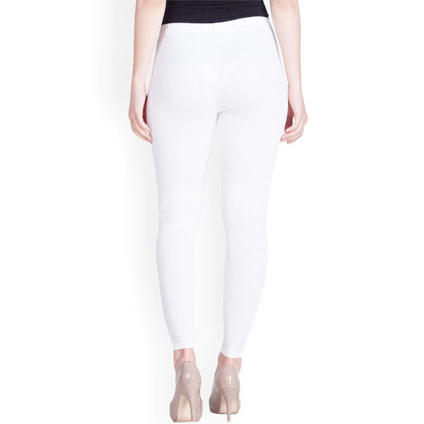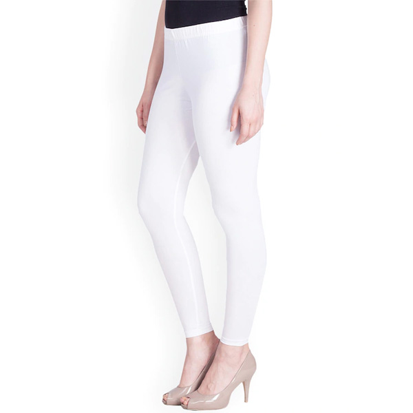 White solid ankle-length Free size cotton leggings, has an elasticated waistband and slip-on closure